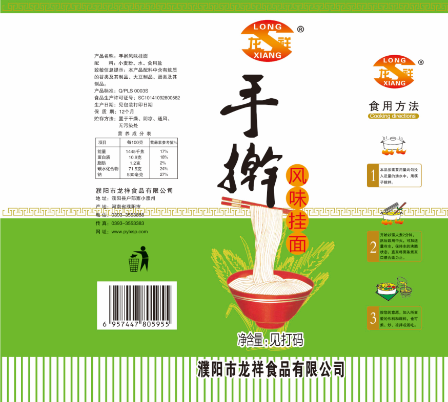 濮陽市龍祥食品有限公司位于河南省濮陽縣戶部寨鎮(zhèn)小濮州,始建于1994年,前期投資200萬元,經(jīng)過幾年的努力,大力開發(fā)市場(chǎng),由于市場(chǎng)的需求量急劇上升,出現(xiàn)供不應(yīng)求,于2004年擴(kuò)建,建成一座新型的現(xiàn)代化面粉加工企業(yè),并擁有全國(guó)先進(jìn)全自動(dòng)生產(chǎn)設(shè)備一套,產(chǎn)量由以前的100噸/天,提高到現(xiàn)在400噸/天。 2012年再次擴(kuò)大規(guī)模申請(qǐng)為濮陽市龍祥食品有限公司,注冊(cè)資金500萬元。2012年又投資800萬元新建掛面生產(chǎn)線一條,日產(chǎn)掛面50噸。龍祥食品有限公司現(xiàn)有職工120余人,總工程師1人,專業(yè)技術(shù)人員10人,經(jīng)濟(jì)師1人,會(huì)計(jì)師1人,銷售人員2人,優(yōu)秀專業(yè)人員20余人?! ↓埾楣咀詣?chuàng)建以來,社會(huì)效益十分可觀。公司一直以“今天的質(zhì)量,明天的市場(chǎng)”為信念,“一切為了客戶需求,竭誠(chéng)追求完美品質(zhì)”為企業(yè)宗旨,走專業(yè)化經(jīng)營(yíng)和職業(yè)化管理的路子。